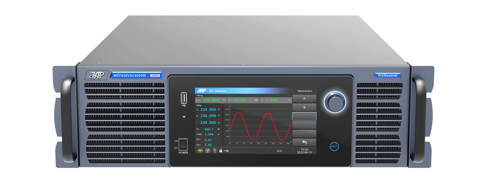 - High-precision measurement: It can read back numerous parameters such as root mean square voltage, AC voltage, positive peak voltage, and voltage peak factor, and monitor the electrical indicators of the equipment in real time under different power environments to comprehensively evaluate the equipment performance;