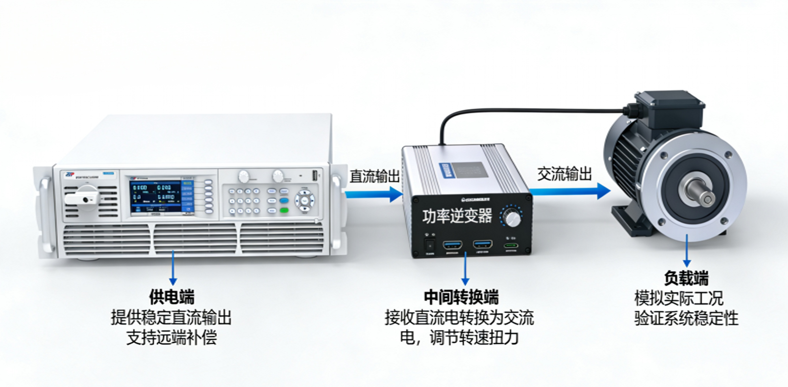 在電機驅動系統測試場景中,大功率直流電源→功率逆變器→電機的供電鏈路很常見。全天科技SP3U/6U系列電源可作為核心供電單元,為功率逆變器穩定輸入直流電壓,再由逆變器將直流電能轉換為可調頻調壓的交流電,驅動電機運行,適用於電機性能測試、逆變器相容性驗證等場景。但不少工程師調試時會忽略一個關鍵操作——接遠端補償,結果導致測試卡殼、設備異常,甚至埋下安全隱患。